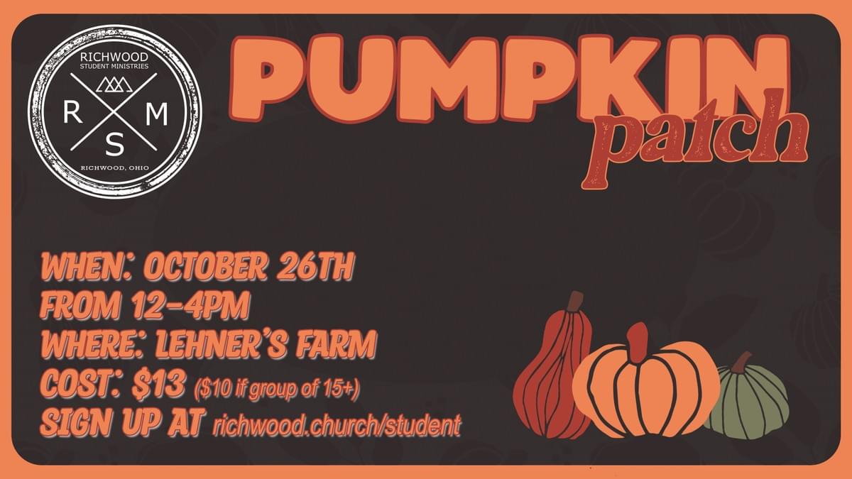 Middle & High School students will be going to Lehner's Pumpkin Patch on October 26th. Please sign up below if you plan to attent.